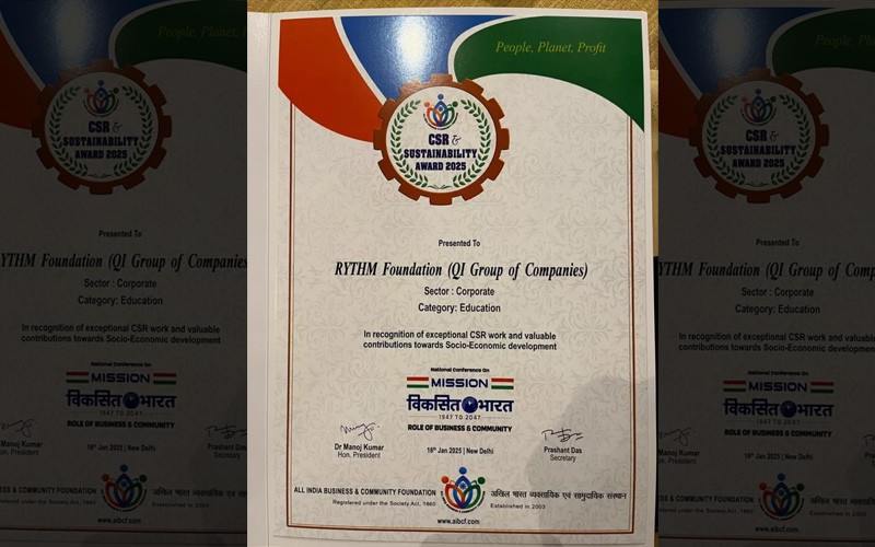 RYTHM Foundation gets two CSR awards in India. Photo courtesy: Facebook/RYTHM Foundation● The Safer Cities for Girls project, a collaboration with Plan India: Recognised for transforming an urban resettlement space in Delhi to ensure the safety and empowerment of adolescent girls. The programme focuses on protecting girls while fostering opportunities for them to thrive in the settlement.