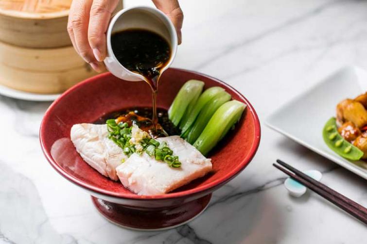 From the wok dishes, you may try the stir fry chicken in chilli oil with sugar snap, shallot and leek or the steamed Indian sea bass in superior soy sauce.