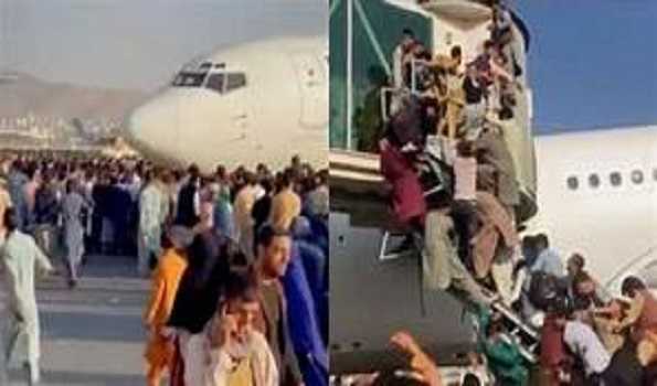Scenes of desperation were witnessed at Kabul airport on Monday as hundreds of people, who are desperate to leave Afghanistan, clung on to a moving US Air Force C-17 aircraft on the tarmac.