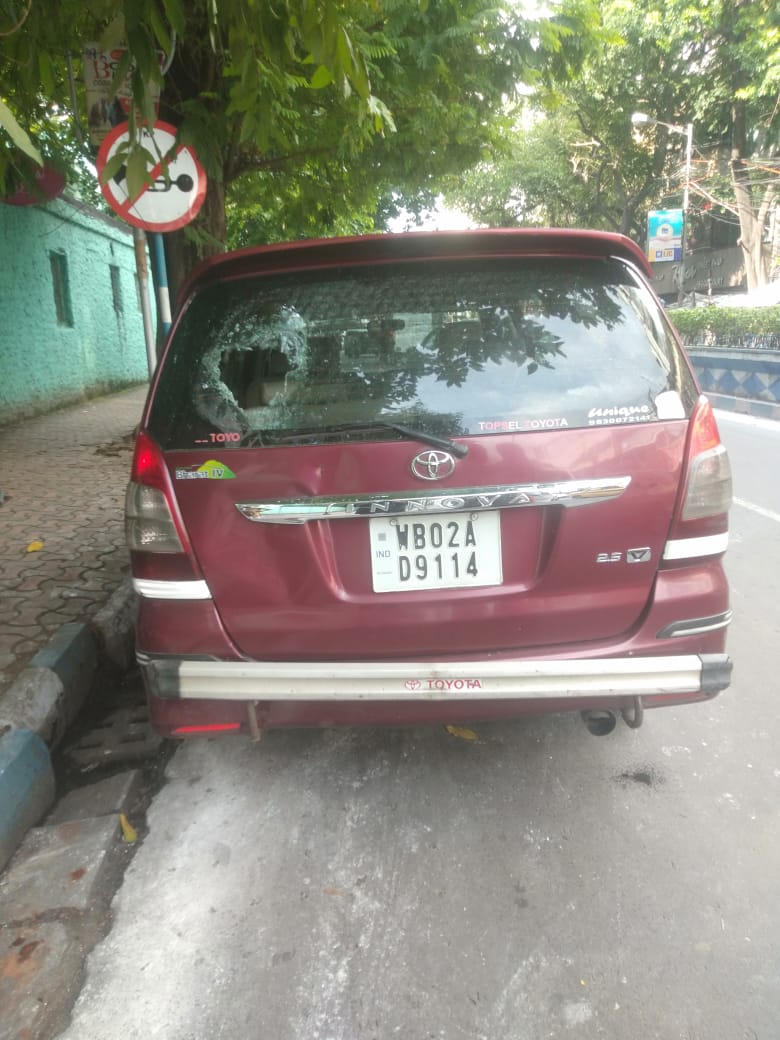 BJP leader Kalyan Chaubey's car was allegedly attacked and vandalised outside Dioceson School in Bhabanipur. Choube has acccused the TMC supporters of resorting to the vandalisation.