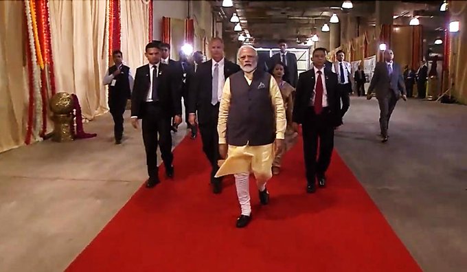 Amid Dhol beats and cheering, Narendra Modi arrives on stage