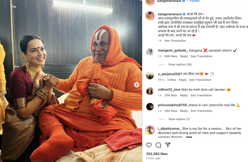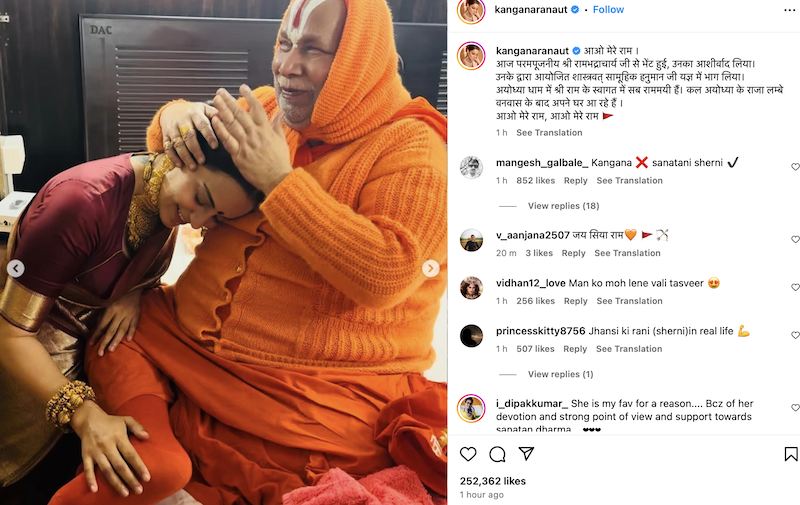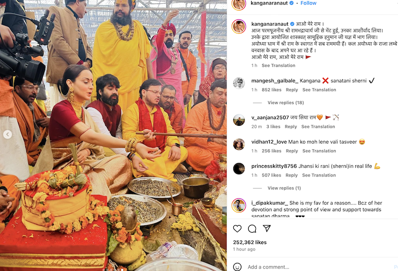 Kangana Ranaut visits Ayodhya, seeks blessing of seer, performs rituals