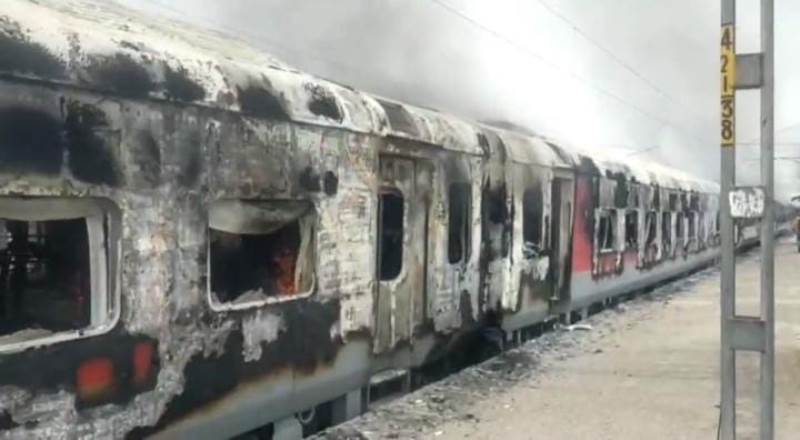 In Uttar Pradesh, a mob entered a railway station in Ballia this morning and set a train coach on fire. They also damaged railway station property before the police used force to disperse them.