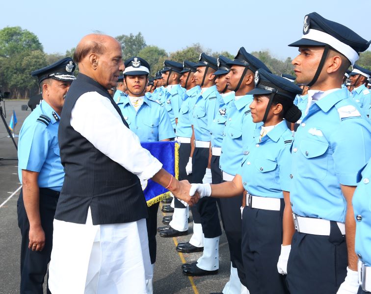 Hyderabad: Defence Minister Rajnath Singh reviewed the Combined Graduation Parade (CGP) of 213 flight cadets of the flying and ground duty branches at Air Force Academy, Dundigal, on Sunday.