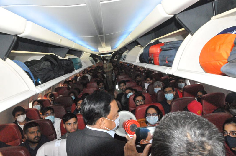 Union Minister for Micro, Small and Medium Enterprises (MSME) Narayan Rane received the evacuees, most of them students, at the airport.
