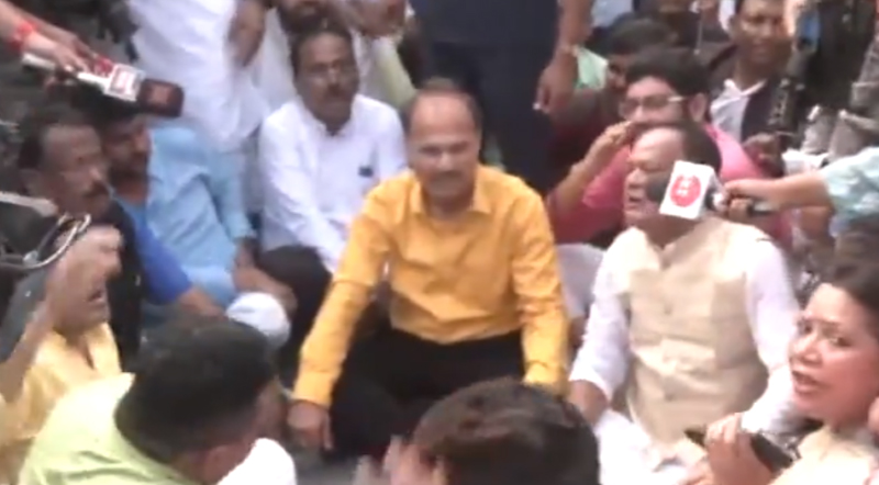 After Adhir, who is also Congress' Lok Sabha floor leader, was stopped in Rampur, he sat on the road with other party workers giving slogans against the police.