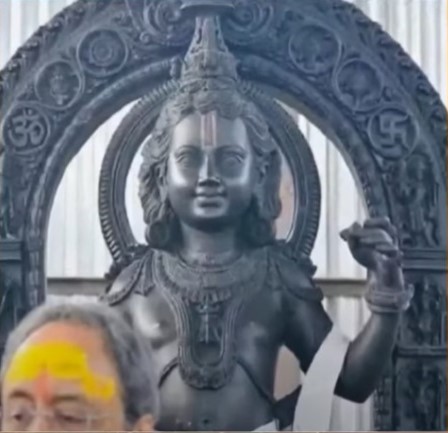 The 51-inch Ram Lalla idol, sculpted by Mysuru-based artist Arun Yogiraj, is made of black stone.