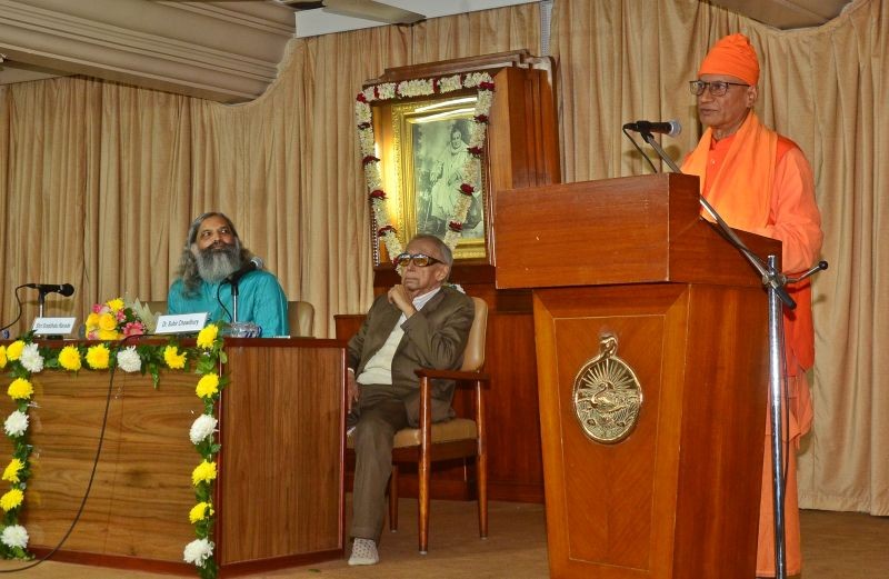 Swami Suparnananda Maharaj speaks at the function to remember Prof. SK Chakraborty. Photo: PR Team