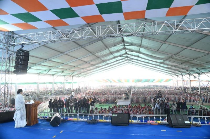 Mamata Banerjee at her rally in Bankura. Photo: AITC Media Cell