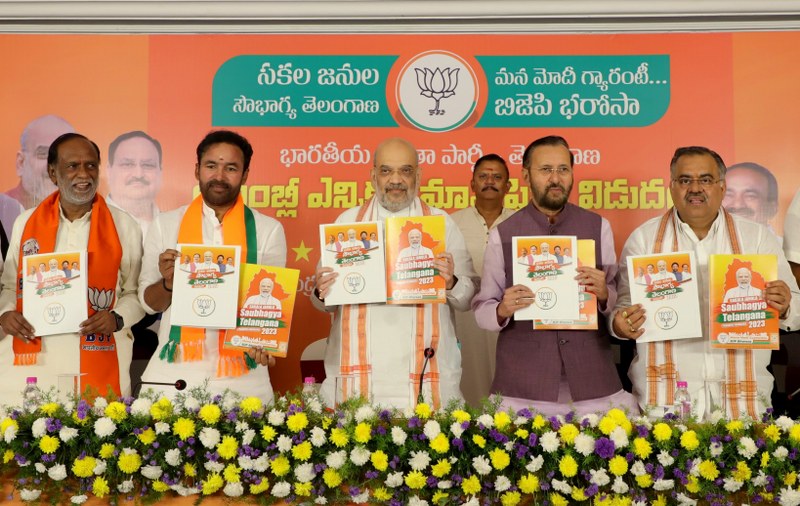Hyderabad: Union Home Minister Amit Shah released the BJP election manifesto, titled "Sakala Janula Saubhagya Telangana," on Saturday for the upcoming assembly elections scheduled for November 30.