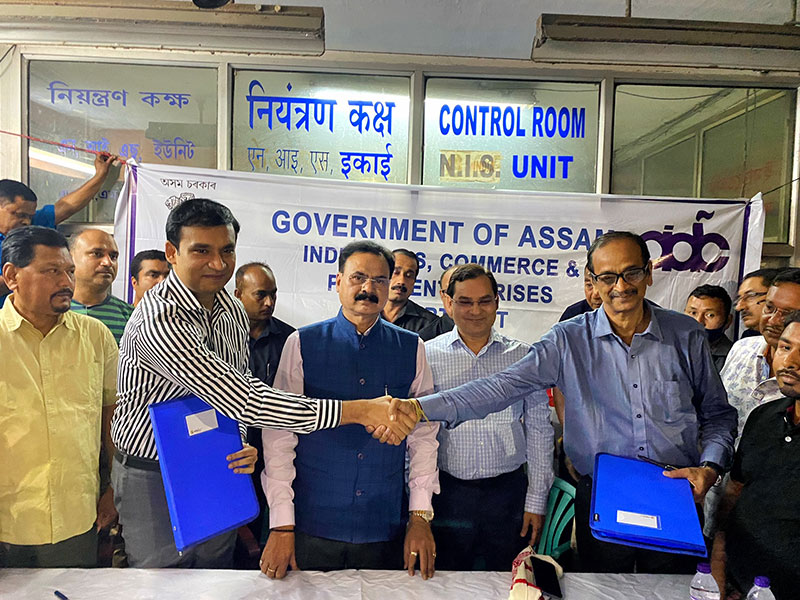 Adil Khan, MD, AIDC and Moloy Ranjan Thakur, authorized person of official liquidator Kuldeep Verma signed an understanding in presence of Chandra Mohan Patowary, Minister of Industries, Commerce and Public Enterprises Department and Principal Secretary Dr. KK Dwivedi at Nagaon Paper Mill, Jagiroad on Monday.