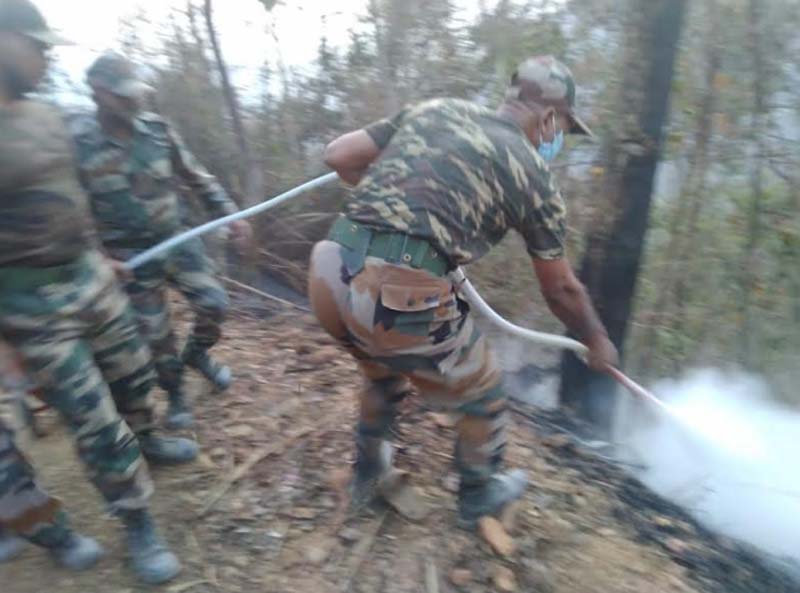 Two parties under Asst Comdt Narayan Sangroula along with the entire fire fighting Eqpt and a medical team under RMO Capt VK Dabas along with the ambulance were sent to provide assistance to locals and help them in this fire fight.