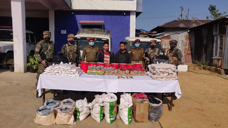 Aizawl: In yet another success in its crusade against smuggling activities, Lunglei Battalion of Headquarter 23 Sector Assam Rifles under the aegis of Headquarters Inspector General Assam Rifles (East), recovered Explosive and war like stores and apprehended two individuals at Siaha district on Feb 27.
