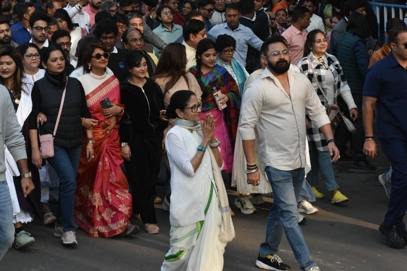 Even as court proceedings were underway, Banerjee took to the streets, leading a massive protest march on foot from Jadavpur to Hazra Crossing, a distance of around six kilometres.