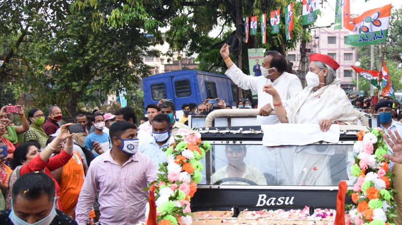 Bachchan, who is an MP of the Samajwadi Party (SP), campaigned for Biswas in a roadshow, that began at Kudgat area in south Kolkata.
