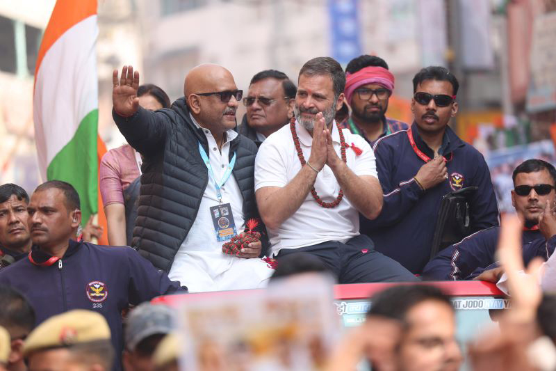Addressing a public meeting as a part of his Bharat Jodo Nyay Yatra after offering prayers at Kashi Vishwanath temple in Varanasi, Uttar Pradesh, Rahul said that this country is of love and not of hatred and it will only become stronger when all people work together.