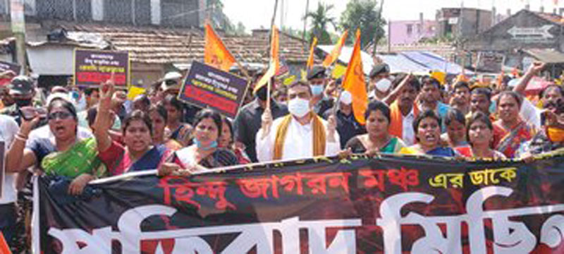 Marched alongside fellow Sanatanis in a procession from Haripur Bus Stand to Tengua More at Nandigram; organized by the Hindu Jagaran Mancha to protest against the brutalities faced by the Bangladesh Hindu community during Durga Puja. The events across the border is a wakeup call