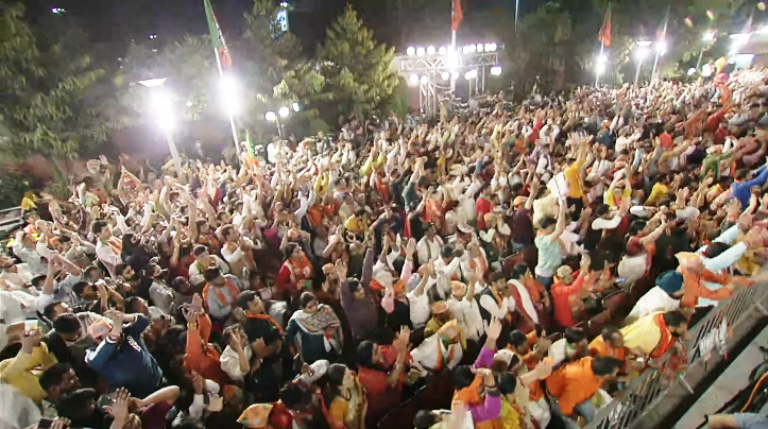 Victory celebrations at party headquarters on BJP's landslide victory in Assembly Elections 2022.