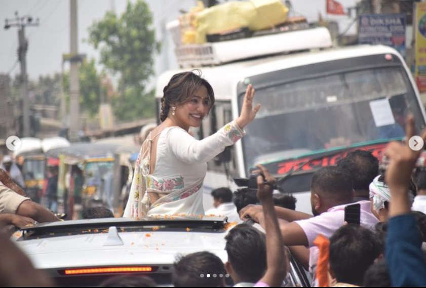 The actor was seen receiving a warm reception from a large crowd in Pirpainti and Kahalgaon during her roadshow.