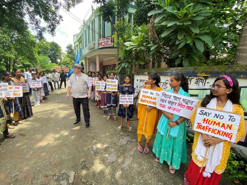 British Deputy High Commissioner, Dr Andrew Fleming, Monday engaged with local stakeholders including elected representatives, police, community leaders and women and girls’ groups to mark the World Day Against Trafficking in Persons at Taki in Bengal's North 24 Parganas district, one of the most vulnerable areas.