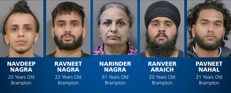 Canadian Police have arrested five Punjab-origin people, including a woman and her two children, for their alleged role in drug and arms smuggling in the Region of Peel and across the Greater Toronto Area (GTA).
