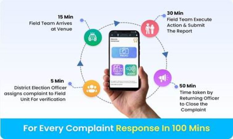 Citizens have used this app to check electoral malpractices in the use of loudspeakers beyond prescribed time or noise levels, campaigning during the ban period, placing banners or posters without permission, deployment of vehicles beyond the permitted limit, property defacement, display of firearms/ intimidation and in checking inducements.