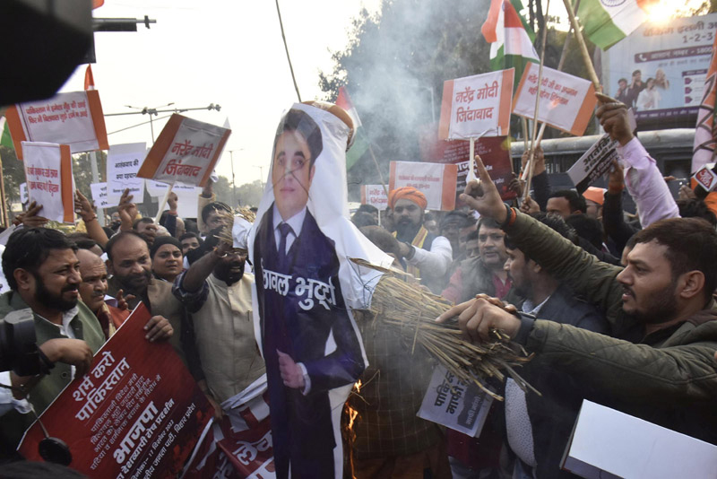 BJP workers and district leaders along with party office bearers, gathered under the leadership of district BJP president Rahul Chikode at busy Chhatrapati Shivaji Maharaj Chowk and staged demonstrations against Bilawal for his statement while shouting slogans against him and Pakistan.