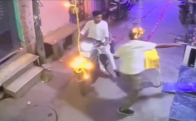 The murder was captured on CCTV, which showed the 44-year-old Akash Sharma, his nephew, Rishabh Sharma (16), and son, Krish Sharma (15), bursting firecrackers on the narrow road outside their house.