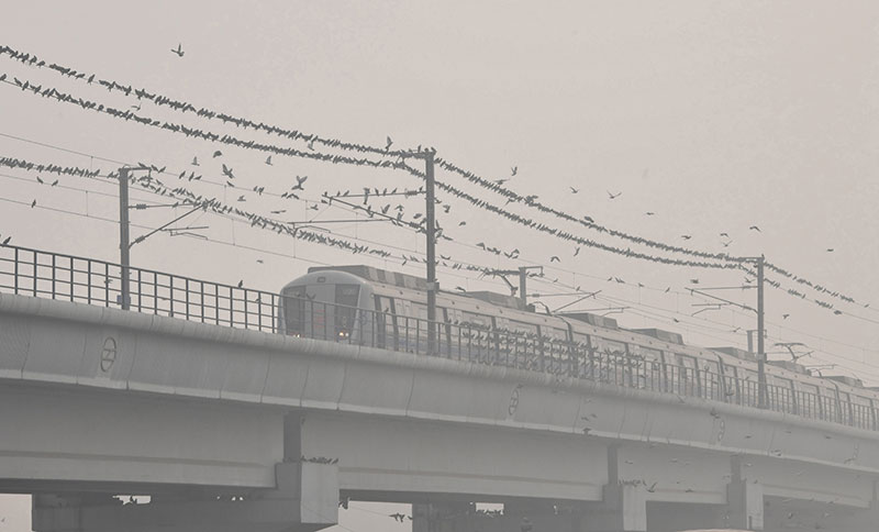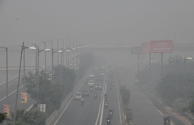 New Delhi/UNI: A thick blanket of smog covered the skyline of the national capital on Friday morning. People complained of watery eyes and itchy throat as the Air Quality Index (AQI) slipped into the 'hazardous' category in several parts of Delhi.