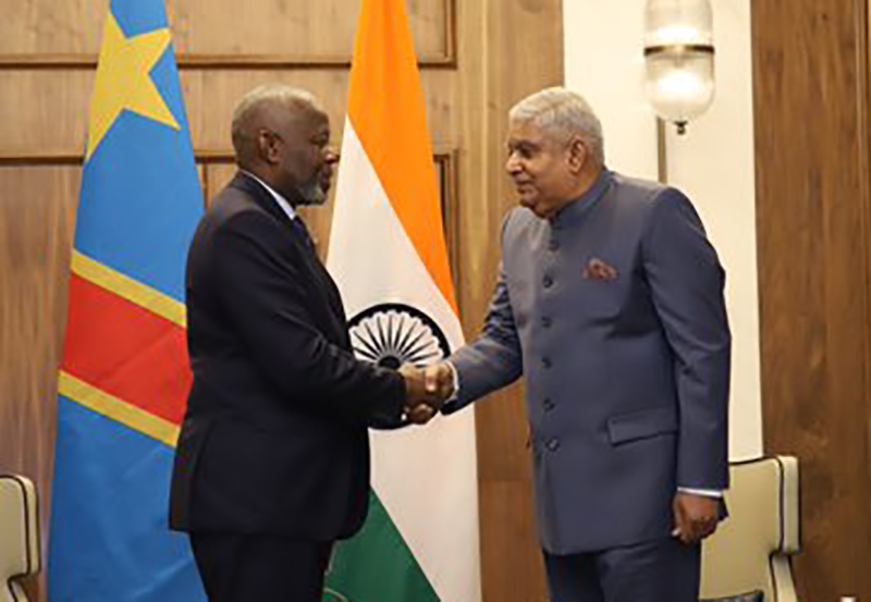 "Both leaders highlighted the strengthening of India-DRC partnership across diverse domains and bolstering people-to-people ties between the two nations," the official Twitter handle of the Vice President said.