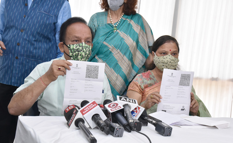 Dr. Harsh Vardhan and Smt. Nutan Goel receives their second dose of COVID-19 Vaccine