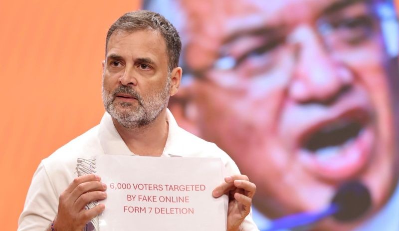 With a powerpoint illustration, the Congress top leader picked the Aland constituency of Karnataka to level the charges against the ECI, which is at loggerheads with the opposition INDIA bloc.