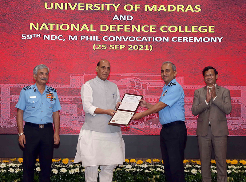 Addressing the graduates of 59th National Defence College (NDC) course (2019 batch) during their convocation ceremony in New Delhi, Singh called for proactive synergy among the Armed Forces in future military strategies and responses to safeguard the interests of the nation.