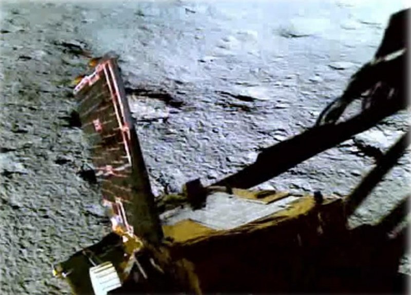 ISRO shares an important visual of the rover rolling down onto the Moon's surface as it exited the lander.. Photo Courtesy: ISRO X Video grab