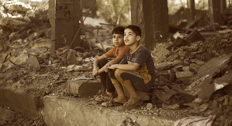 Children look at their destroyed homes in Rafah city, in the southern Gaza Strip. Photo courtesy: UNICEF / Eyad El Baba