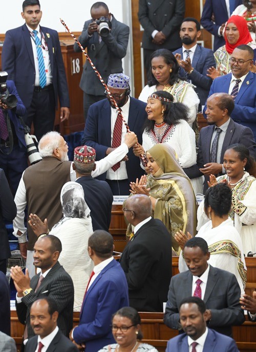 Opening his speech, Prime Minister Modi conveyed greetings of friendship and goodwill from the people of India to the lawmakers and citizens of Ethiopia. He said it was a privilege to address the Parliament and, through this “temple of democracy”, speak directly to the people of Ethiopia — farmers, entrepreneurs, women, and young citizens shaping the nation’s future.