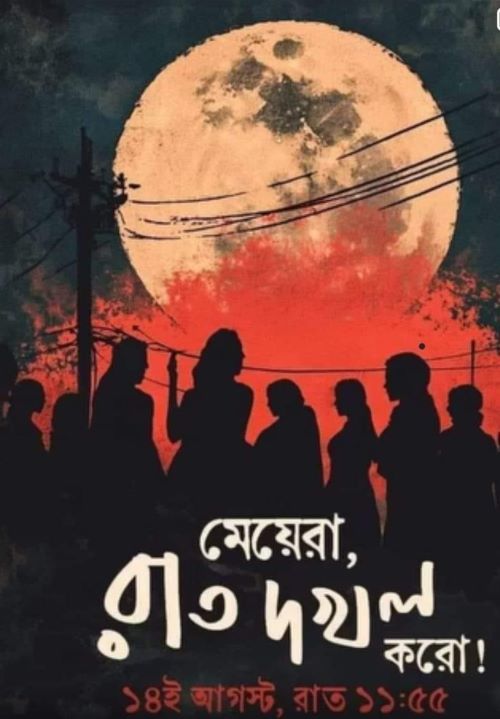 "The Night is Ours," the slogan reads as women in Bengali give a call to vigil at night demanding their safety and freedom.