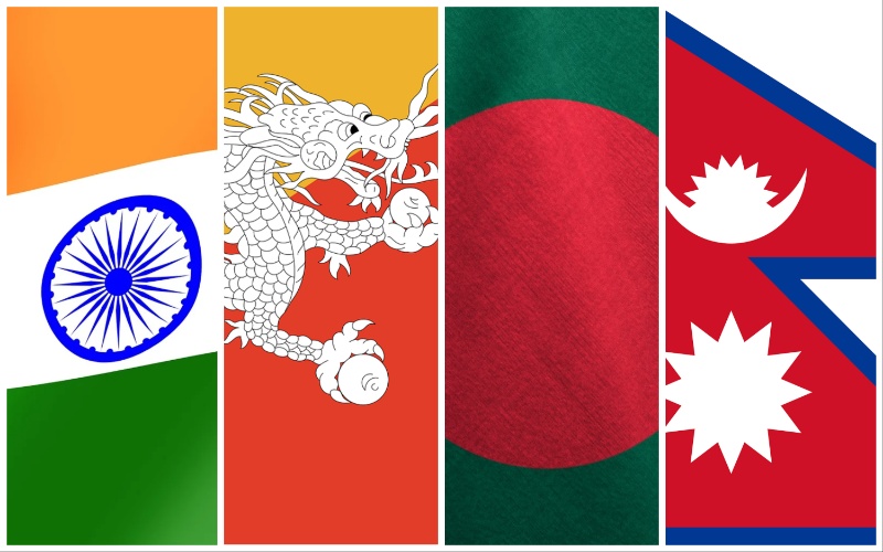The central point that connects all the four countries is Siliguri in the Indian state of West Bengal. Siliguri borders Nepal on its west and Bangladesh on its east.