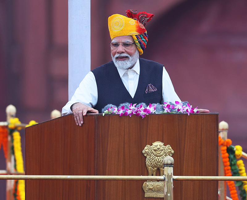 Indian PM Narendra Modi on Tuesday addressed the nation on Independence Day when he praised the countrymen for forming a strong and stable government after three decades of uncertainty, instability and political compulsions.