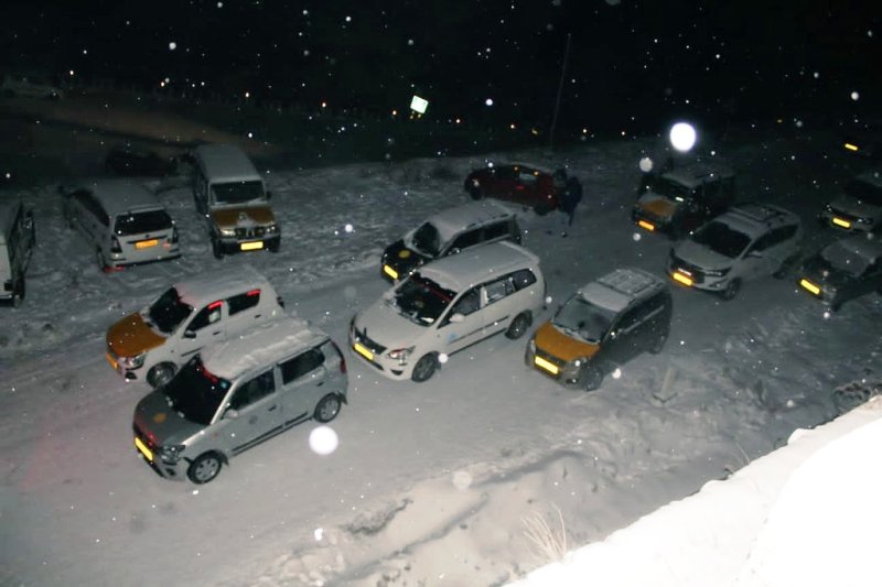 After the heavy snowfall, the vehicles started skidding on the Jawaharlal Nehru Marg that connects these areas with Gangtok.