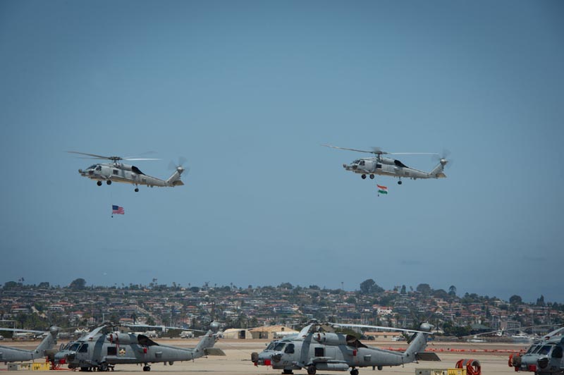 Today, the @indiannavy inducted its first two MH-60R Seahawks from the @USNavy during a ceremony at Naval Air Station North Island. (1/2)