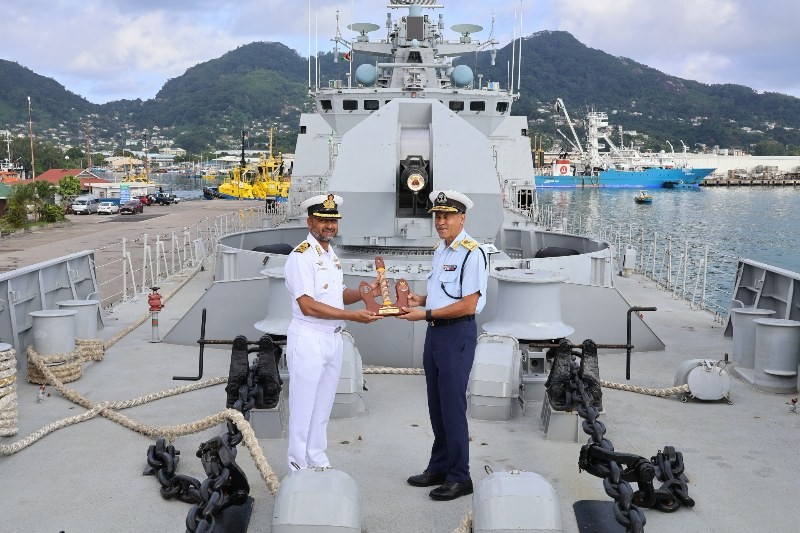 "During the port call, Captain Peter Varghese, the Commanding Officer, hosted Shri Kartik Pande, HCI (High Commissioner of India) to Seychelles, and Maj Gen Michael Rosette, Chief of Defence Forces, Seychelles Defence Forces," read a statement issued by the Indian government.