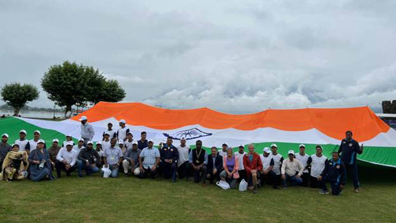 New Delhi: The Ministry of Tourism, Govt. of India (North), Institute of Hotel Management Srinagar and Himalayan Mountaineering Institute (HMI), Darjeeling in a joint effort displayed a 7500 Sq. Ft Indian Tricolour at the bank of Dal Lake, Srinagar on Monday.