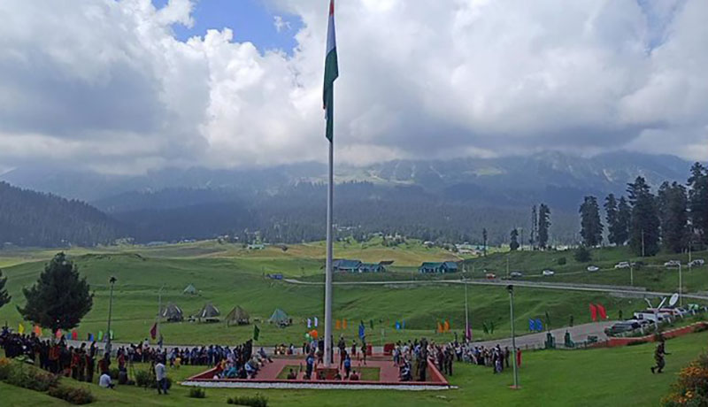 The Indian Army tweeted: "Ahead of the 75th #IndependenceDay, #LtGenYKJoshi, #ArmyCdrNC dedicated 100ft tall #NationalFlag at #Gulmarg."