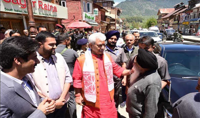 Srinagar: Jammu and Kashmir Lieutenant Governor Manoj Sinha on Sunday interacted with the residents, tourists and shopkeepers at the main market of the tourist hot spot Pahalgam .