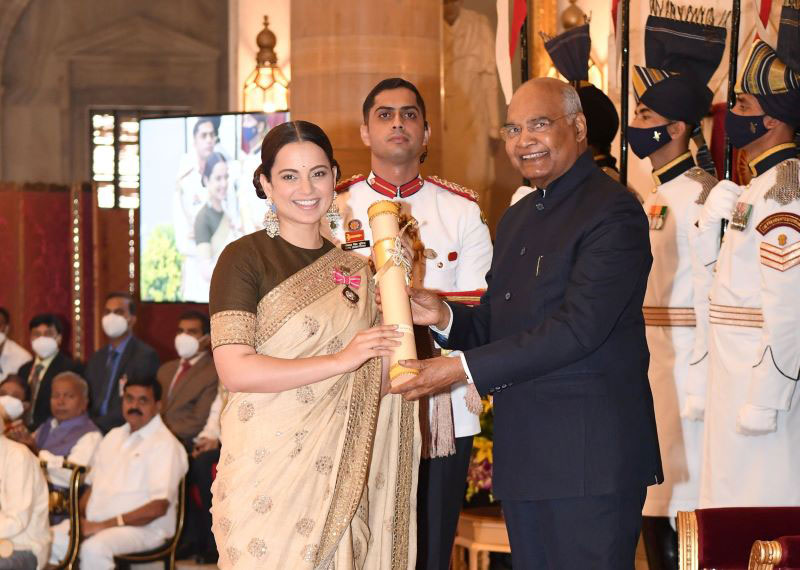 Kangana Ranaut receiving Padma Shri award from President Ram Nath Kovind | Image Credit: Twitter/President of India
