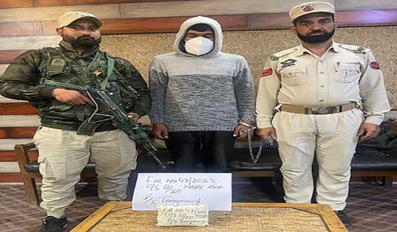 The drug smuggler identified as Latief Mir of Khaipora Tangmarg was arrested with 40 grams of contraband Charas-like substance at Main Market Tangmarg during checking.