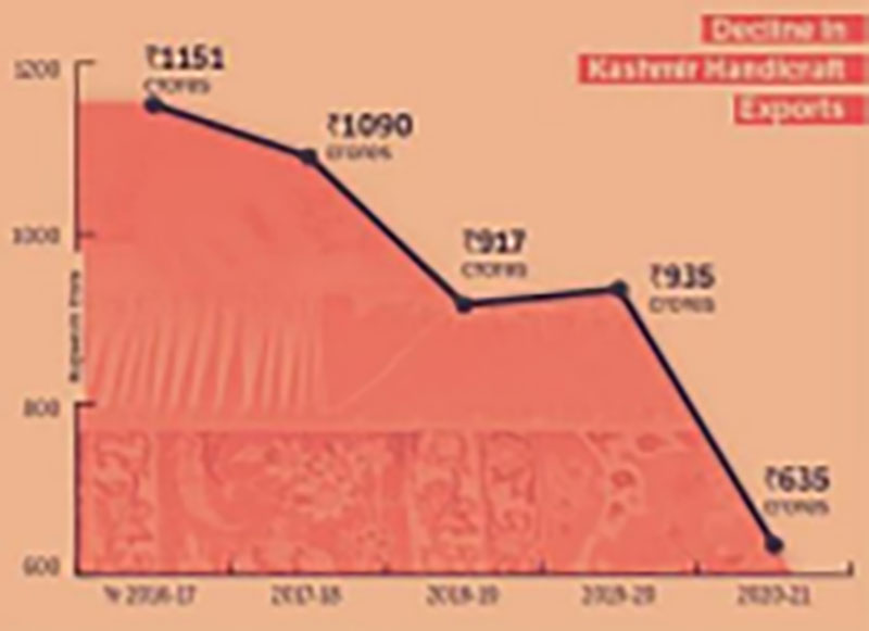 This downtrend trend has put Kashmiri handicraft exporters in distress, as they complain of incurring huge losses mostly from the last three years since 2019, when the special status of J&K was read down.