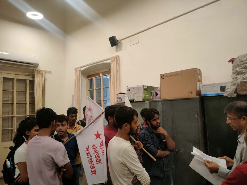 One of the protesting students told a local news channel, "We are protesting against the step to curb the resistance in Presidency (University). The administration is forming a code of conduct without even consulting with the students."