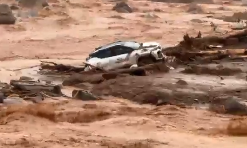 The landslides, which caused the roads to be swept away, were accompanied by heavy rains.